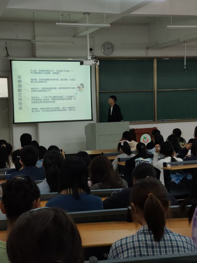 為豐富課余生活,讓新生更深入了解生物食品與環境學院第二課堂, 1014日中午,生物創新之光協會于生化樓一階梯教室召開了生物學院第二課堂第一次新生培訓會議。本次培訓會由生物創新之光協會負責人溫和主講,生物食品與環境學院全體21級學生參與本次會議。