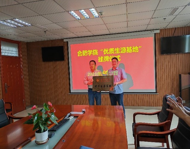 在六安市城南中學(xué),阮班鋒院長(zhǎng)首先就我院辦學(xué)特色、專業(yè)設(shè)置、就業(yè)前景和2023年招生計(jì)劃等情況向城南中學(xué)校長(zhǎng)劉傳寶及領(lǐng)導(dǎo)班子進(jìn)行了介紹。隨后,合肥學(xué)院和城南中學(xué)舉行了“優(yōu)質(zhì)生源基地”授牌儀式。劉傳寶校長(zhǎng)表示將通過(guò)優(yōu)質(zhì)生源基地的平臺(tái)建設(shè)進(jìn)一步增強(qiáng)兩校之間的溝通、交流與合作。