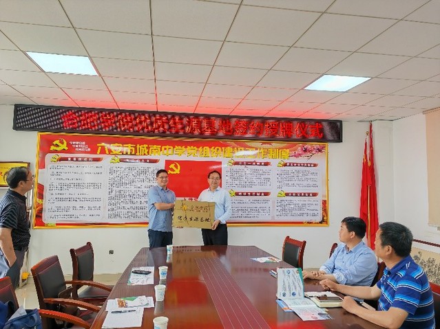 座談會(huì)后,雙方舉行了合肥學(xué)院和毛坦廠中學(xué)東城校區(qū)“優(yōu)質(zhì)生源基地”授牌儀式。在霍邱縣第一中學(xué),黨委書記、校長(zhǎng)楊明生,副校長(zhǎng)王德寶、許正田等校領(lǐng)導(dǎo)首先帶領(lǐng)宣傳小組參觀了霍邱一中校園及周邊環(huán)境。隨后,在霍邱一中名師工作室雙方簽訂了戰(zhàn)略合作協(xié)議,舉行了合肥學(xué)院“優(yōu)質(zhì)生源基地”授牌儀式。在儀式上,楊明生校長(zhǎng)介紹了霍邱一中近年來(lái)的辦學(xué)情況、校園文化建設(shè)和教育教學(xué)改革情況;阮班鋒院長(zhǎng)介紹了合肥學(xué)院的辦校歷史和辦學(xué)特色,陳俊院長(zhǎng)介紹了生物食品與環(huán)境學(xué)院的專業(yè)設(shè)置和學(xué)科特點(diǎn)等情況,希望未來(lái)有更多的霍邱一中優(yōu)秀學(xué)子進(jìn)入合肥學(xué)院深造。雙方都表達(dá)了加強(qiáng)溝通交流與友好合作的意愿。