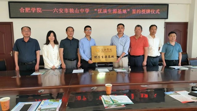 座談會后,雙方進行了合肥學院和獨山中學“優質生源基地”簽約授牌儀式。黃永富副校長表示將通過“優質生源基地”的平臺建設增強兩校之間的溝通、交流與合作。