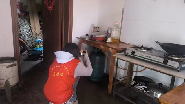 農村廁所一直是農村衛生環境的一大重點難題,在與當地工作人員的交流過程中,隊員們得知前黃村一直在推進農村廁所改革,便申請與當地工作人員一起前往村民家中對村民進行廁所改造要點及重要性科普,幫助村民們建立環保衛生意識。在對廁改科普的過程中,隊員們還對村民家中的煤氣使用情況進行了排查,在排查過程中發現了一些安全隱患,如:煤氣輸送管道折疊導致煤氣輸送障礙,煤氣罐上堆放物品,煤氣輸送管距離貨源過近等。隊員們對村民的不當行為進行了指出,村民們在隊員們的幫助下及時排除了安全隱患。