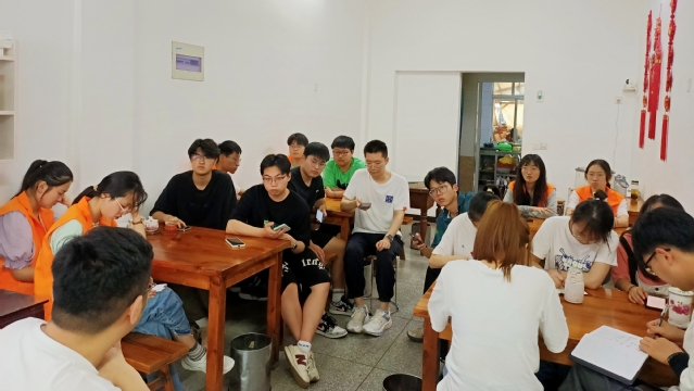 到達目的地后,經過簡單的休整,“鄉”遇青春,“演”動綠夏調研團成功召開了第一次全體會議。會議主要討論了調研小組的走訪群體和調研內容,并確定了校園小組的具體活動形式和宣傳小組的主要任務,細致安排了團隊成員的具體任務。