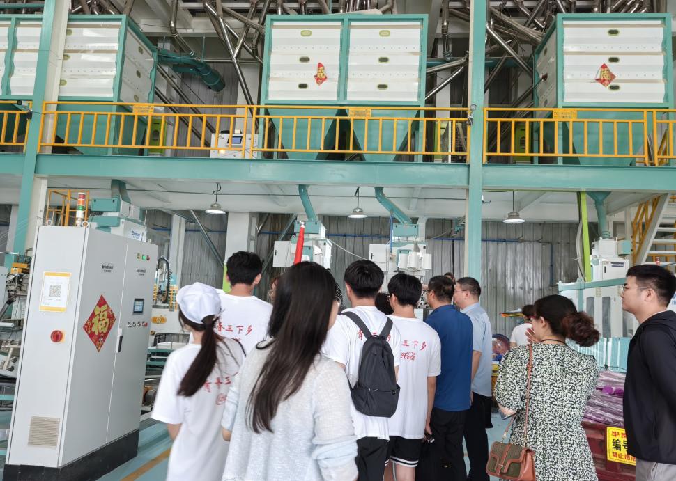 在鄭氏米業有限公司,實踐團走訪參觀了其生產車間,在與公司負責人的交談中了解到了該公司的發展歷程、發展模式、企業規模等信息。據悉,潁上縣鄭氏米業有限公司在完善加強自身發展的同時,公司充分發揮龍頭企業帶動作用,以勇于擔當為己任,為周邊困難群眾提供150余個常年就業崗位,人均年收入50000余元,帶動脫貧村18個、惠及農戶4000余戶,脫貧戶戶均增收3000多元。