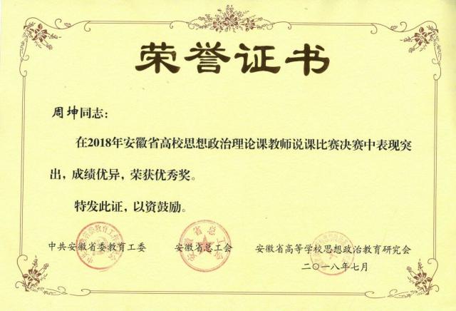 周坤等老師在2018安徽省高校思政理論課說課比賽中獲得好成績