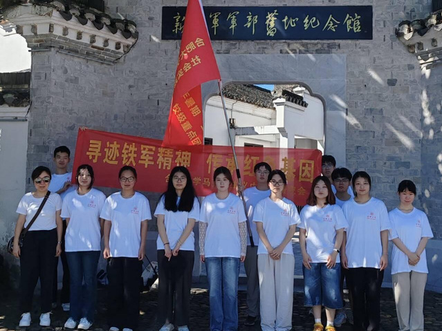 圖為合肥大學(xué)馬克思主義學(xué)院“星火銘魂,赤韻流芳”小隊(duì)到達(dá)新四軍軍部舊址合影 云嶺,這片浸潤著英雄鮮血的紅色土地,曾是新四軍軍部的駐扎地,見證了新四軍在抗日戰(zhàn)爭時期的浴血奮戰(zhàn)與光輝歷程。抵達(dá)目的地后,大家先到新四軍領(lǐng)導(dǎo)人葉挺、張?jiān)埔荨㈨?xiàng)英等辦公與居住的地方。推開斑駁的木門,簡樸的桌椅、磨損的生活用品映入眼簾,這些帶著歲月痕跡的物件,無聲地訴說著當(dāng)年革命條件的艱苦與先輩們堅(jiān)韌不拔的意志。