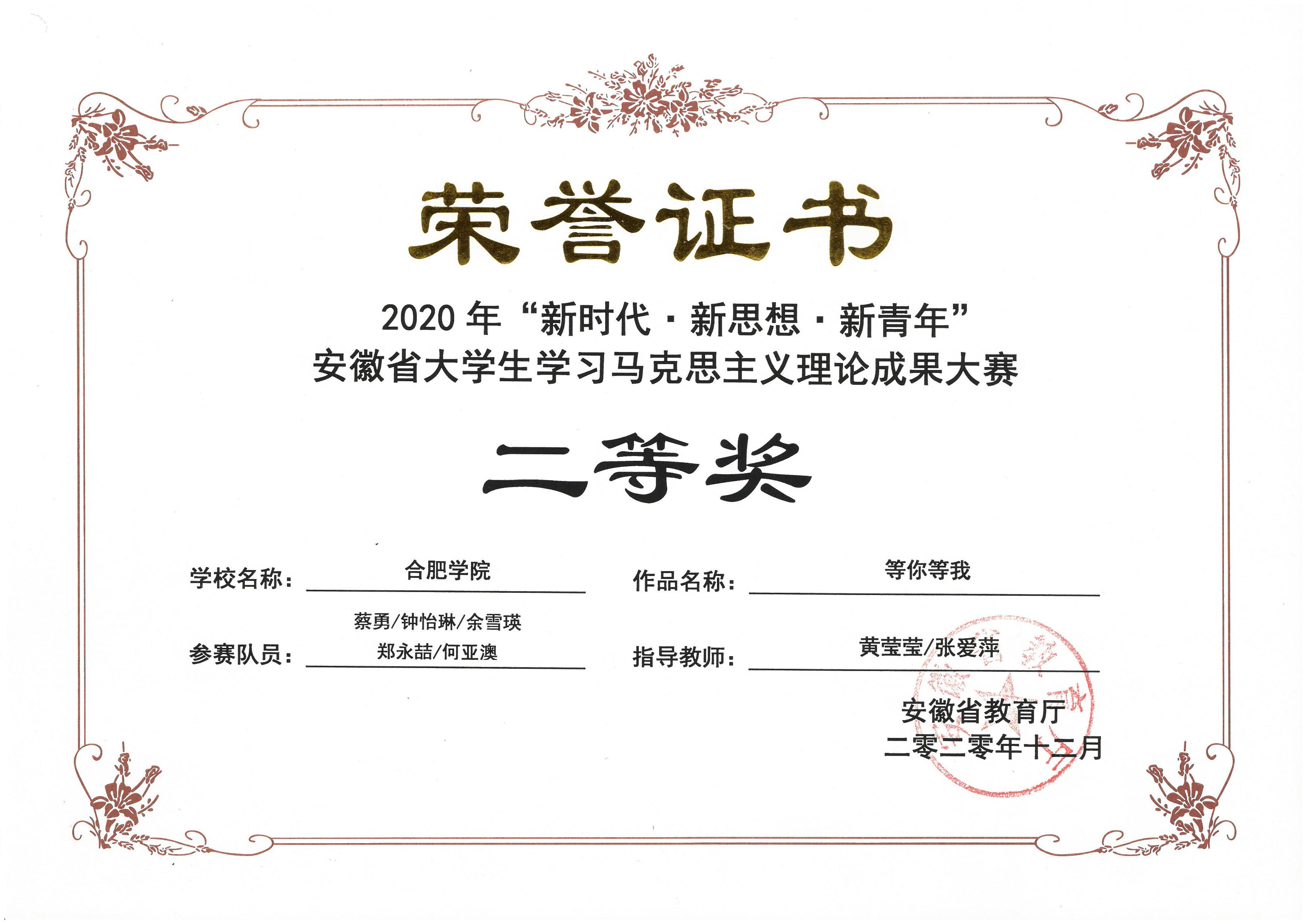 2020合肥學(xué)院-蔡勇、鐘怡琳、余雪瑛、鄭永喆、何亞澳-微創(chuàng)作《等你,等我》省級二等獎