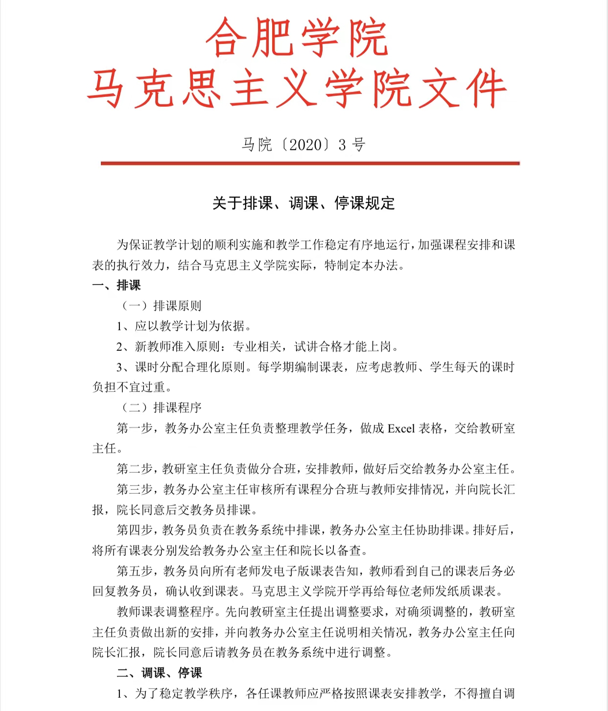 關(guān)于排課、調(diào)課、停課規(guī)定(馬院〔2020〕3號(hào))