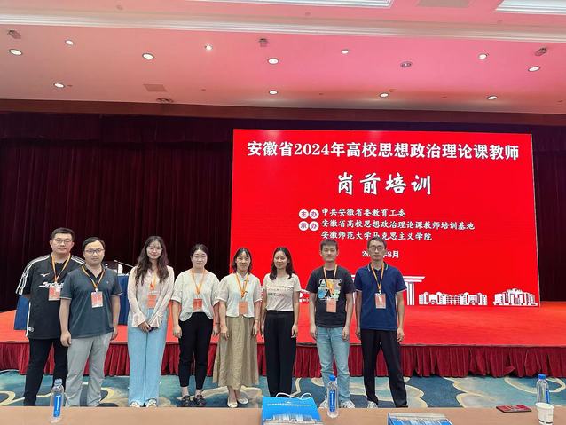 8月20—24日,由中共安徽省委教育工委主辦、教育部高校思想政治工作隊伍培訓研修中心(安徽師范大學)承辦的高校思想政治理論課教師崗前培訓班在蕪湖舉辦,我院8名新進教師參加了此次培訓。