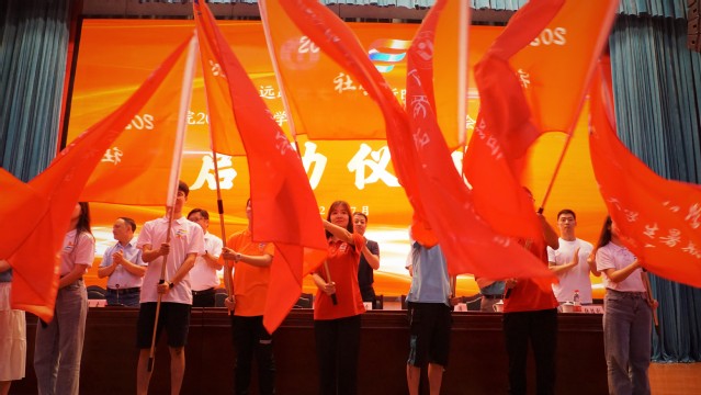 啟動儀式上,校團委副書記王玉介紹了我校今年暑期“三下鄉(xiāng)”社會實踐工作的準備情況;團隊學生代表先進制造工程學院王宇同學、帶隊指導老師代表語言文化與傳媒學院劉政老師和馬克思主義學院黃瑩瑩老師分別積極發(fā)言表態(tài);與會領(lǐng)導為“三下鄉(xiāng)”實踐隊代表授旗。