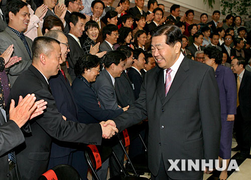 中共中央政治局常委、全國政協主席賈慶林在會前會見與會者