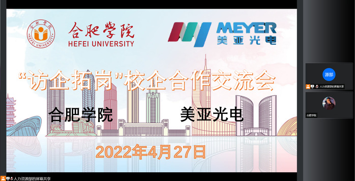 為扎實開展我校書記校長訪企拓崗促就業專項行動,進一步推進畢業生就業工作,4月27日下午,學校在行政樓七樓會議室與合肥美亞光電技術股份有限公司聯合舉辦了“訪企拓崗”視頻交流會。校黨委副書記劉建中出席會議,學生處、校就業指導中心及先進制造工程學院、人工智能與大數據學院相關負責人參加會議。會議由校黨委委員、黨委學生工作部部長朱濤主持。