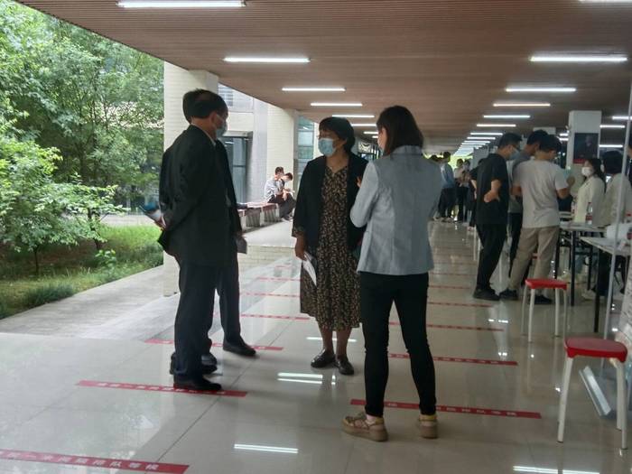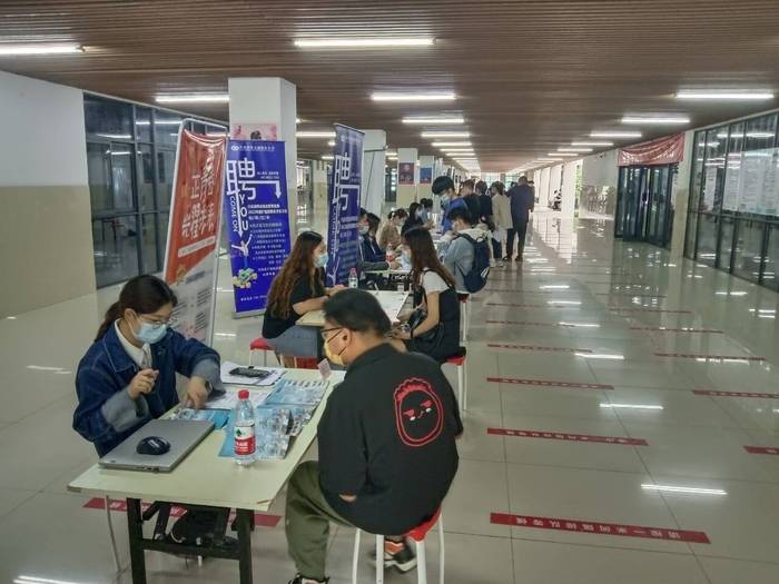 活動現場,企業代表為畢業生們詳細介紹了企業文化、招聘要求并耐心解答了學生們的疑難困惑,雙方就就業細節等交換了意見。畢業班輔導員老師們也積極為學生們推薦工作。招聘會期間,校就業指導中心學生助理積極引導、熱心服務,現場井然有序,實現了疫情防控和促進就業兩不誤的目標。