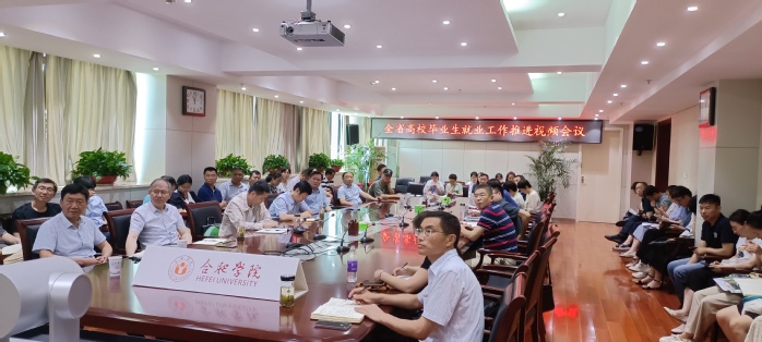 6月24日,安徽省教育廳組織召開全省高校畢業生就業工作推進視頻會議,貫徹落實黨中央、國務院決策部署,全力以赴穩步推進2022屆全省高校畢業生就業工作。我校黨委書記王其東,黨委副書記劉建中,學生處、教務處、研究生處、保衛處、團委、大學生創新創業教育中心等相關部門主要負責人和各二級學院主要領導、2022屆畢業生輔導員50余人在行政樓九樓西會議室參加了視頻會議。