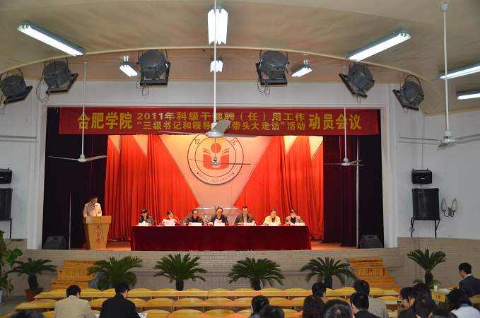 院“兩辦”主任劉樟樹宣讀了《合肥學院“三級書記和領導干部帶頭大走訪”活動實施方案》。方案指出,為深入貫徹黨的十七屆五中、六中全會和胡錦濤總書記“七一”重要講話精神,切實做好新形勢下的群眾工作,根據省委辦公廳《關于開展以“訪民情、匯民智、釋民惑、解民憂、惠民生”為主題的“五級書記帶頭大走訪”活動的通知》和《合肥市“五級書記帶頭大走訪”活動實施方案》的要求,結合學院實際,我院要認真組織開展“三級書記和領導干部帶頭大走訪”活動。此項活動具體分為“準備動員”、“組織實施”、“總結提高”三個階段進行,旨在促進各級黨組織負責人和領導干部深入基層、深入黨員和群眾、深入工作一線,加強同黨員和群眾的聯系與交流,增進同黨員和群眾的感情;了解一線工作情況,總結、宣傳和推廣一線的工作經驗;聽取基層單位和群眾意見,改進有關工作;發現并解決師生員工在工作、學習、生活中的實際問題;牢固樹立群眾觀點,進一步轉變作風,提升群眾工作水平和領導工作能力,推動學院又好又快發展。