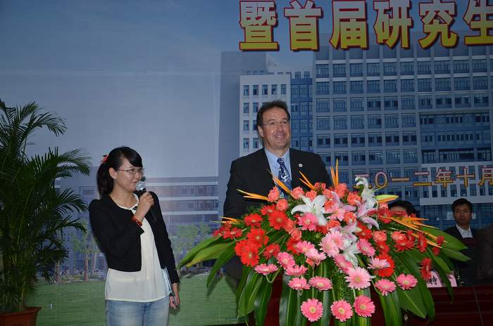 米歇爾?萊勒斯教授在發言中首先表達了對16名研究生的祝賀。環境與工程專業是合肥學院的重要專業之一,也是過去的十年中與德國有著密切合作的專業,萊勒斯教授與蔡院長、我院生物系的老師一直保持著密切聯系。他認為,沒有良好的環境,經濟也很難持續發展,近幾年,新能源開發的重要性逐漸凸顯。中國也面臨著同樣的問題。在這一背景下,專業人才的培養尤為迫切。