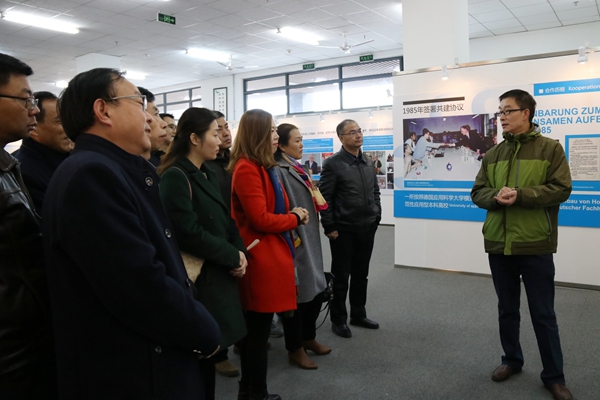 2日上午,與會代表來訪我校,并參觀了我校中德合作共建三十周年圖片展。我校黨委委員、宣傳部部長劉樟樹熱情接待了來賓,研究生處伍德勤處長介紹了我校專業碩士培養情況。在參觀中德合作圖片展過程中,劉樟樹詳細講解了我校與德國應用科學大學合作發展的歷史、成果以及我校“地方性、應用型、國際化”的辦學定位,并介紹了德國總理默克爾與國務院總理李克強共同視察我校的情況。與會代表對我校快速發展的歷史和中德合作的累累碩果表示了由衷的贊嘆,對我校專業碩士培養的特色給予了充分的肯定。之后,代表們前往廬江縣考察安徽農業大學皖中農業綜合實踐基地。