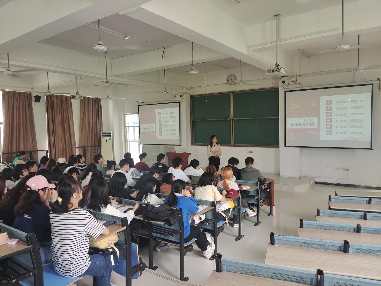 5月4日,設計學院為全體學生黨員、入黨積極分子開展黨課培訓,黨委副書記吳云為同學們講授黨規黨紀專題黨課。