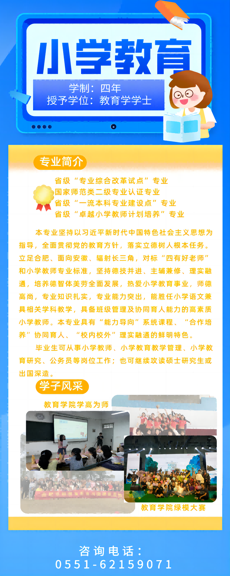 小學教育(本科 師范)                   咨詢電話:0551-62159071