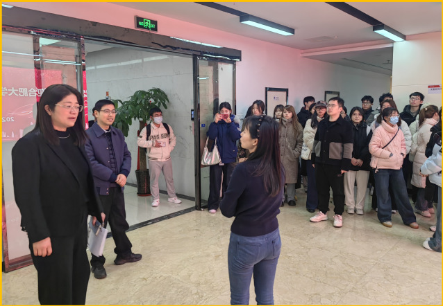 在安策智庫行政主管王俊霞引導下,師生先后參觀了公司開放式辦公區(qū)社科研究中心檔案管理室和黨建文化廳了解數(shù)據(jù)監(jiān)測、政策分析等實務場景,現(xiàn)場觀摩智庫分析系統(tǒng)與數(shù)字化檔案管理技術的運行模式。