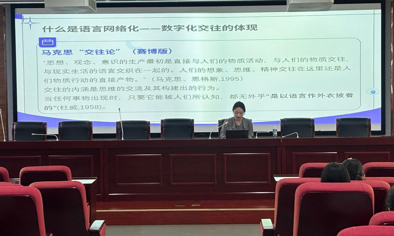 2025年4月29日下午語言網(wǎng)絡(luò)化與媒介化思維的辯證之思為主題的合肥大學(xué)2025年研究生學(xué)術(shù)沙龍系列講座在一期學(xué)術(shù)報(bào)告廳舉辦本次講座由語言文化與傳媒學(xué)院23級(jí)碩士研究生趙天琪主講。語言文化與傳媒學(xué)院23級(jí)、24級(jí)碩士研究生,部分本科生參加。