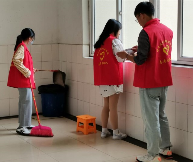活動開始之前,由志服隊的委員組織簽到,大家簽到完成后根據之前分配的任務開始了各自的工作。這次勞動實踐主要的活動是打掃教學樓一樓,大家在委員那里領取完自己的清理工具(掃帚、簸箕、抹布等)后,開始到自己所負責的區域打掃。每位參與人員都非常的認真——每個小角落都掃得很干凈;窗沿被擦得锃亮;還有細心的同學將樓梯下面倒地的展板一個個扶起來了。同學們深入到工作中,把實踐要求化為責任,沒有一絲絲的懈怠。經過半個多小時的奮斗,本次活動圓滿結束。