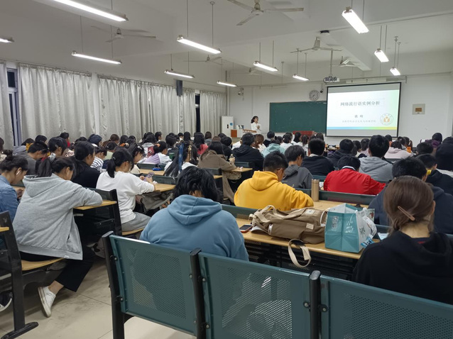 10月28日晚18時(shí)30分,合肥學(xué)院語言文化與傳媒學(xué)院張昀老師于一期5棟307為2021級本科生舉辦了主題為《網(wǎng)絡(luò)流行語實(shí)例分析》的學(xué)術(shù)講座。