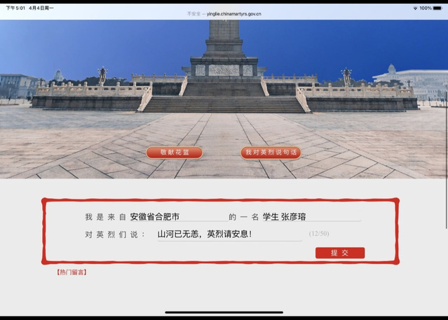 為更好地緬懷革命英烈、傳承紅色基因,把開展黨史學(xué)習(xí)教育同弘揚優(yōu)秀傳統(tǒng)文化結(jié)合起來,引導(dǎo)廣大師生堅定理想信念,繼承優(yōu)良傳統(tǒng),激發(fā)愛國情感,語言文化與傳媒學(xué)院學(xué)生第一黨支部20224445積極開展清明祭英烈線上主題活動