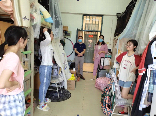 為了深入了解同學們暑假生活狀況和返校情況,8月28日下午,語言文化與傳媒學院黨委 記儲昭輝,黨委副書記張愛萍與輔導員一行人前往文傳學院各寢室看望同學,對同學們表示慰問和關切。
