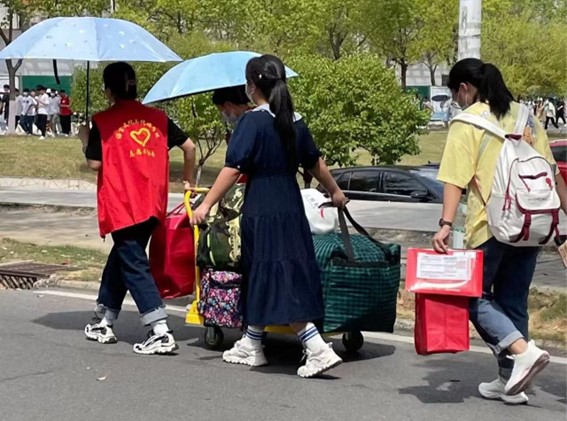 早上七點(diǎn),第一批黨員同學(xué)們就來到了迎新的大本營(yíng),簽到、佩戴志愿者證,到各自的崗位就位、一切都有條不紊的進(jìn)行著。早上九、十點(diǎn)鐘是新生到來的高潮,九月的合肥還是十分炎熱,但這絲毫沒有影響學(xué)生黨員們幫助學(xué)弟學(xué)妹們的心情。幫助搬運(yùn)行李、介紹學(xué)校的各處設(shè)施、分享在大學(xué)學(xué)習(xí)生活的經(jīng)驗(yàn)、叮囑剛?cè)雽W(xué)新生剛來大學(xué)的注意事宜,切切實(shí)實(shí)的做到了哪里有需要,哪里就有學(xué)生黨員們的身影。