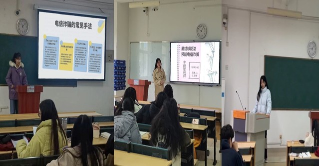 活動上,宣傳委員從電信詐騙的主要類型及典型特征進行講述,幫助同學們熟悉生活中常見的詐騙形式,引導同學們注意其中陷阱,增強同學們在生活中遇到詐騙現象靈活應對的防范意識。