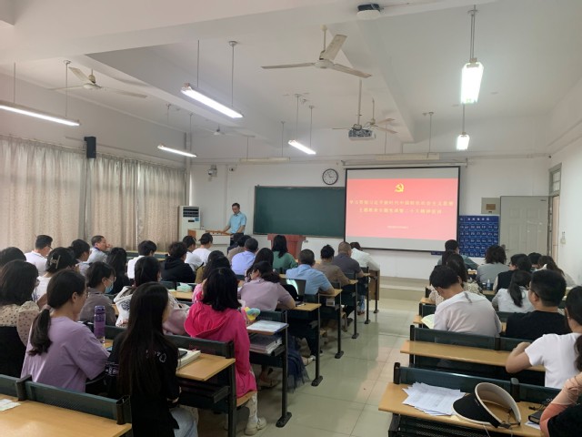 5月16日下午,語言文化與傳媒學院在5棟305教室舉行主題教育專題黨課暨黨的二十大精神宣講會,黨課由學院黨委書記儲昭輝教授講授,全院所有教師及學生黨員參加。