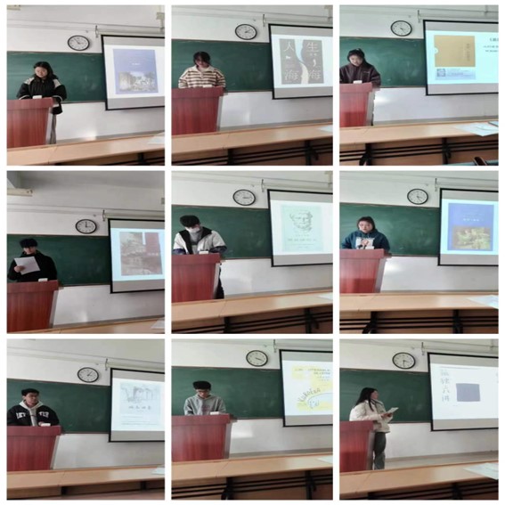 本次活動共有三項流程。第一項流程,在主持人陸欣悅簡單介紹規則后,由漢語言文學一班既定的17位同學作為匯報人依次上臺分享讀書心得,其中前八人為第一小組,后七人為第二小組。兩組匯報間存留間隔休息時間。本次活動中同學們分享的書籍類型多樣,涵蓋歷史類、哲學類、文學類等多方面的作品。在熟悉書籍內容的基礎上,同學們對書籍蘊含的思想與觀點進行了思考與分析,表達了自己的獨特見解。