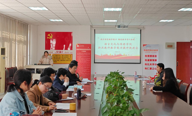 高質量教師是高質量教育發展的中堅力量為幫助新進教師更好地掌握教學基本功,提升課堂教學能力,鍛造教書育人本領,語言文化與傳媒學院精心組織開展新進教師教學能力提升工作,學院于2023年11月24日召開了新進教師教學能力提升促進會。學院領導、教學督導組、系部主任和新進教師與會交流研討。