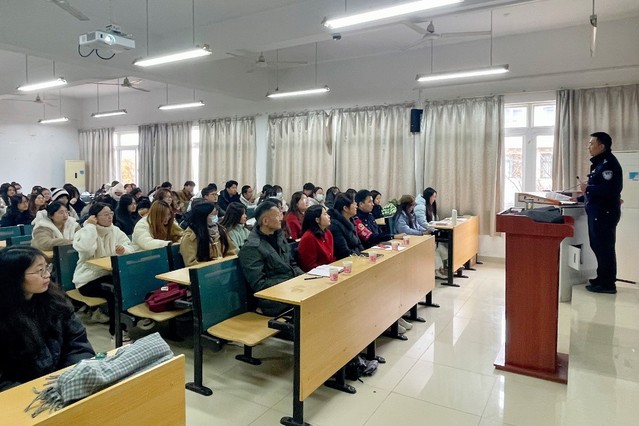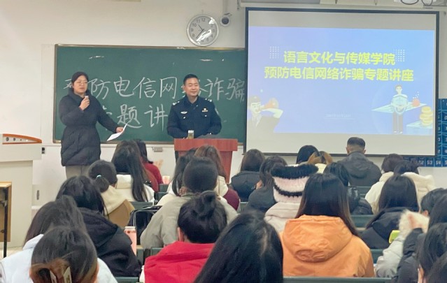 為深入踐行電信網絡安全觀,鞏固加強大學生識別電信詐騙、網絡詐騙的知識,進一步增強全體師生防詐騙安全意識,12月13日上午,語言文化與傳媒學院在5棟307召開預防電信網絡詐騙專題講座。此次講座邀請到蓮花派出所民警蔣勇前來主講,校保衛(wèi)處治安科科長王良斌、院黨委副書記張愛萍、院學工辦主任顧盼盼、輔導員柳守志以及全體學生代表出席會議。