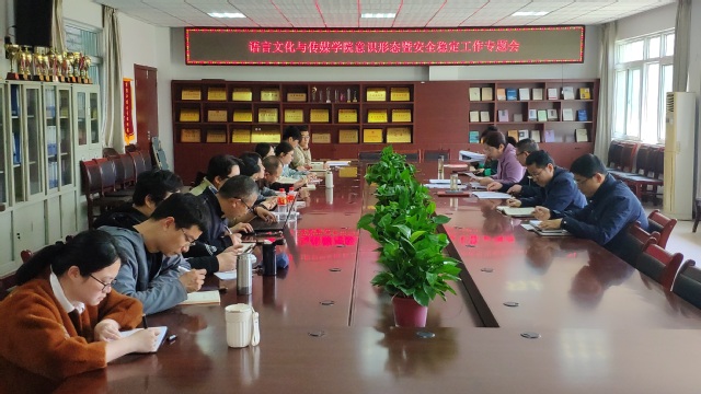 4月9日上午,語言文化與傳媒學(xué)院在學(xué)院大會(huì)議室召開意識形態(tài)暨安全穩(wěn)定工作專題會(huì),學(xué)院領(lǐng)導(dǎo)班子成員、黨委委員、紀(jì)委委員、科級干部、各黨支部書記、系(中心)主任及研究生、本科生輔導(dǎo)員參加會(huì)議,會(huì)議由院黨委書記儲(chǔ)昭輝主持。