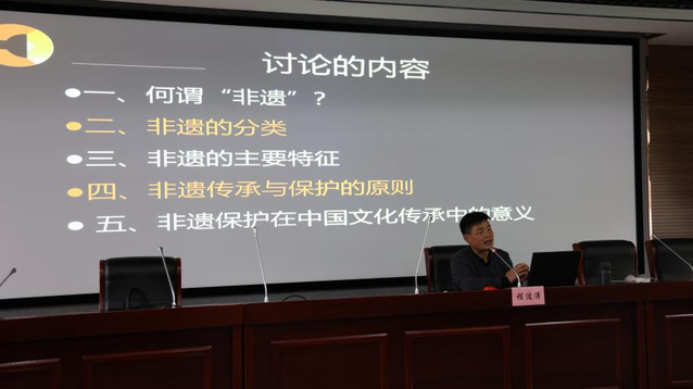 講座圍繞非遺文化的價(jià)值和傳承意義展開,程教授用大量生動(dòng)的案例和圖片講述“非遺”的由來、類別和特征,呈現(xiàn)“非遺”的獨(dú)特魅力、保護(hù)原則和在中國文化傳承中的意義,并結(jié)合自身經(jīng)歷,闡述非遺文化傳承的重要性,提醒同學(xué)們傳承非遺,時(shí)不我待。