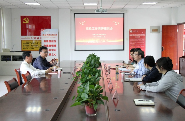 在調研座談會上,語言文化與傳媒學院黨委書記儲昭輝全面介紹了學院黨的建設工作,特別是全面從嚴治黨、巡察整改工作及黨紀學習教育開展情況;院長丁增武從專業建設、教學科研、研究生培養、留學生培養等方面介紹了學院發展情況;黨委副書記、紀委書記張愛萍就二級紀委履職盡責情況、存在問題及下一步工作打算進行了匯報。