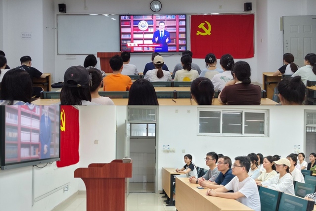 628日,語言文化與傳媒學院組織師生黨員觀看2024年高校黨組織示范微黨課展播第二講《黨史中的紀律建設》,其中全體學生黨員在5304教室集中觀看。
